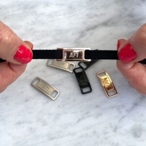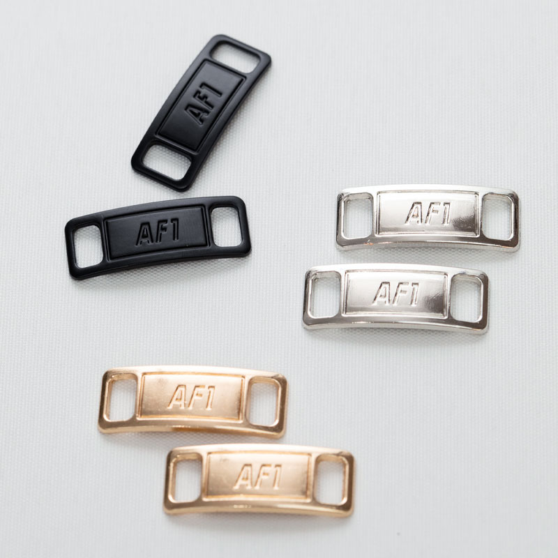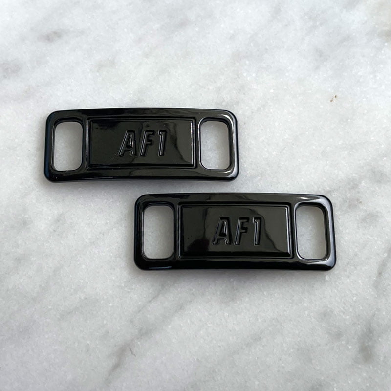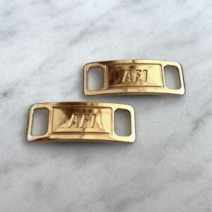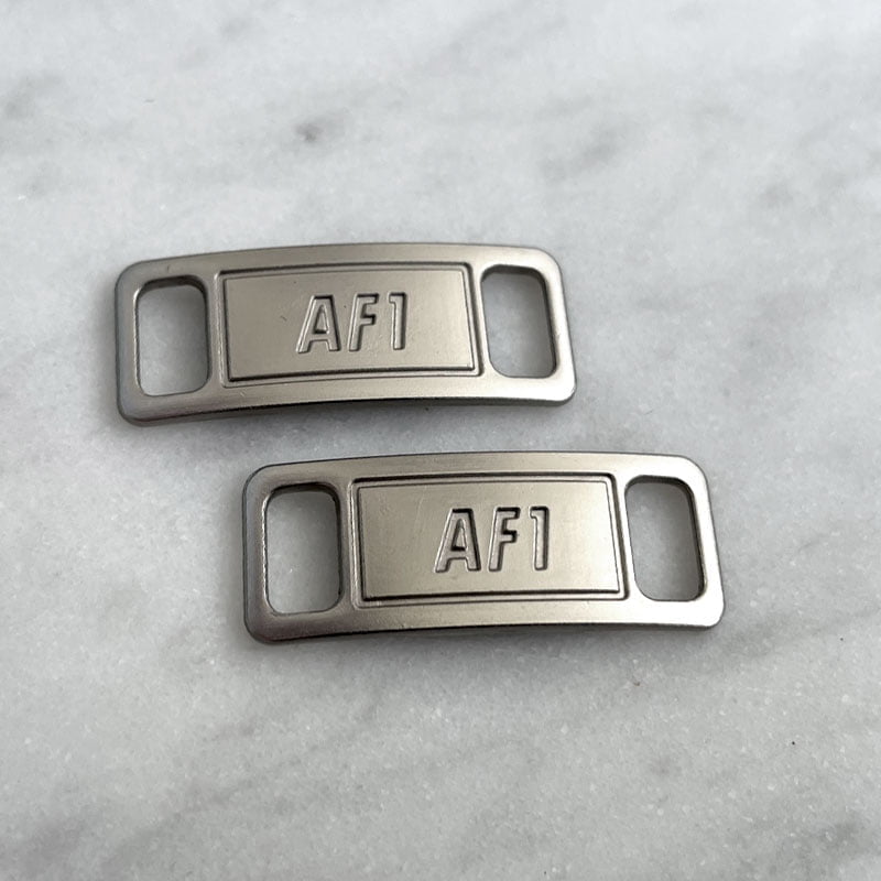Ben je je AF1-tags kwijtgeraakt? Dan kan je deze hier vervangen! Geschikt voor platte schoenveters en verkrijgbaar in populaire kleuren via het keuzemenu. De tags zijn gemaakt van metaal, en bij je aankoop zijn twee stuks (1 paar) inbegrepen.