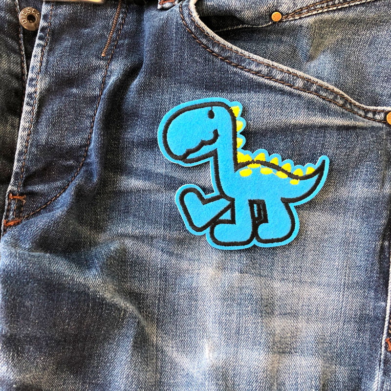 In kinderkleding ontstaan er al snel gaten of vlekken. Met deze dino die 10 x 9 cm groot is, kan je zo’n vlek of gat gemakkelijk verbergen of repareren. Strijk de dino gewoon op over de vlek of het gat heen, en verleng daarmee de levensduur van de kleding. Bovendien is zo’n applicatie ook geschikt voor andere stoffen, zoals een pet of een tas.
