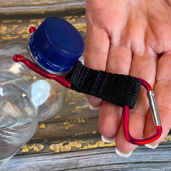 Met deze fleshouder kan je je fles meenemen op wandelingen en tegelijkertijd je handen vrijhouden. De houder is geschikt voor alle standaard PET-flessen van 0,5 liter.