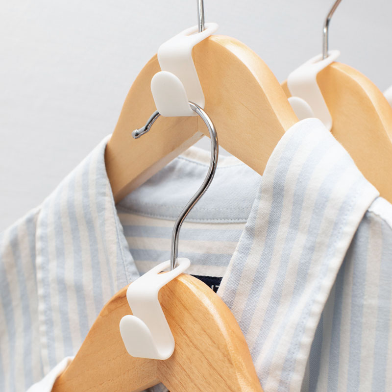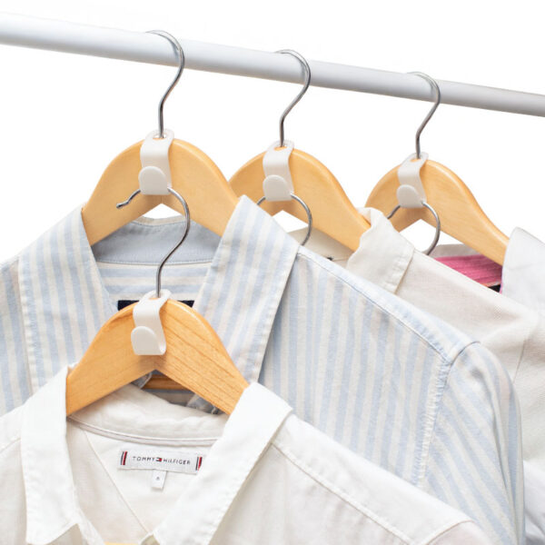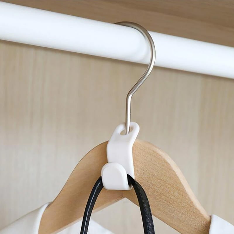 Deze set bevat 5 stuks slimme haken voor klerenhangers. Deze klerenhangerhaken zorgen voor meer plek én overzicht in je garderobekast. Ook kan je deze indien gewenst gebruiken voor het ophangen van een schoudertas of zak aan een klerenhanger.