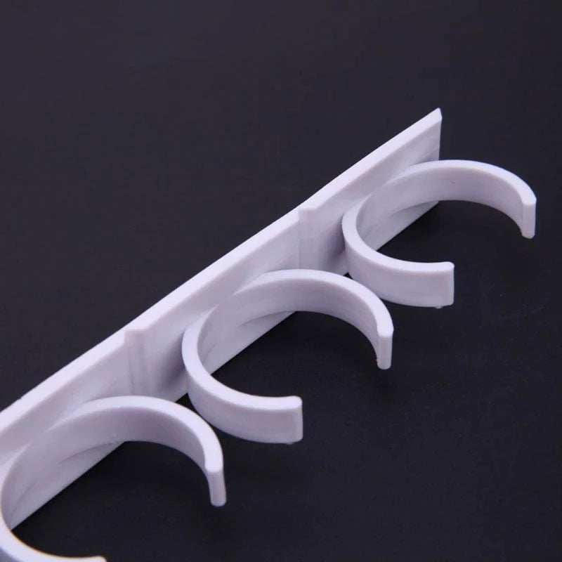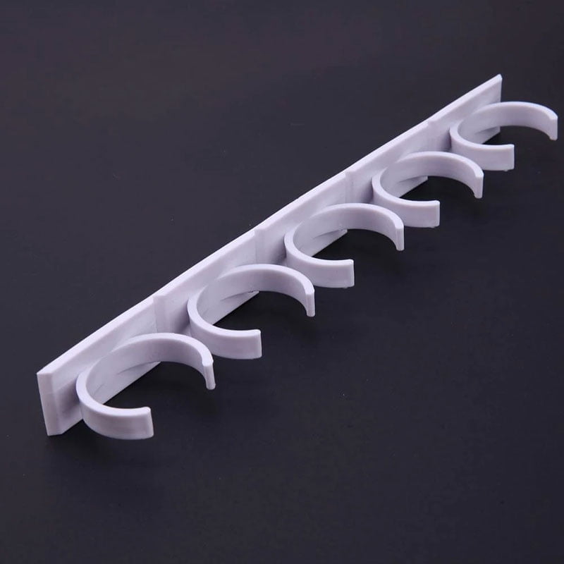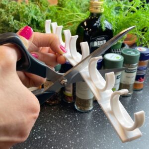 Kruidenhouder met een lengte van 25 cm. Elk kruidenrek heeft een zelfklevende achterzijde en kan tot 5 potjes met een diameter van 3,3-4,2 cm bevatten. Kies voor 2 of 4 houders, met plaats voor in totaal 10 of 20 potjes. Je kan het hele rekje gebruiken, of je kan ervoor kiezen om dit op maat te knippen. Zo kan je bijvoorbeeld een houder voor 2 of 3 potjes maken.