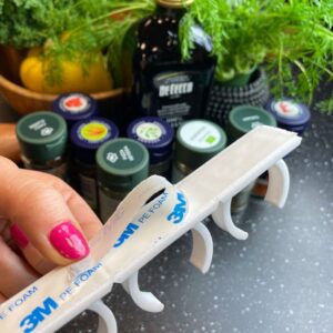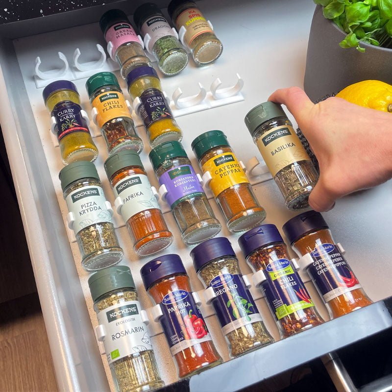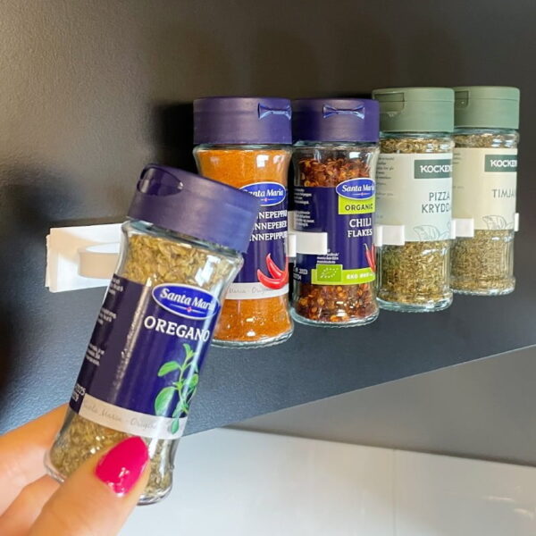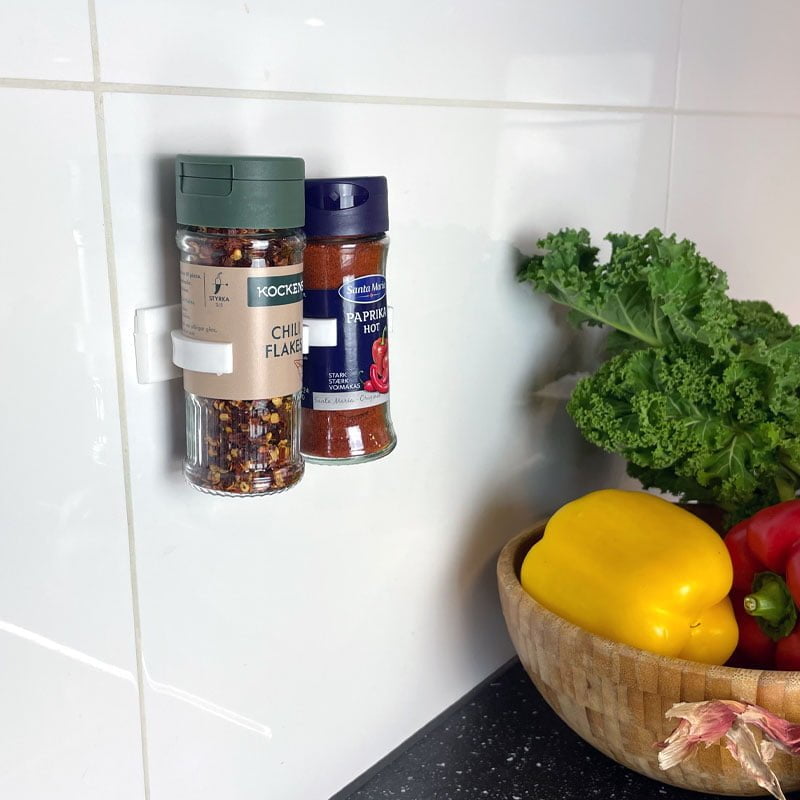 Onze tip: Als je het kruidenrek aan de muur wil ophangen, dan raden we aan om óók de meegeleverde houtschroeven te gebruiken. Wil je de kruiden echter liggend in een la hebben, dan volstaat het om de houder in de lade vast te zetten met de zelfklevende achterzijde.