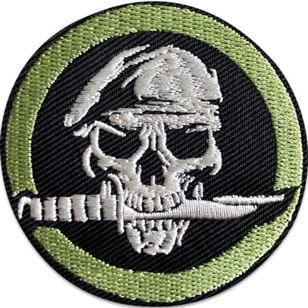 Ben je op zoek naar een stoere applicatie, dan ben je hier aan het juiste adres. Dit is een geborduurde applicatie van een militair doodshoofd met een mes tussen de tanden, voorzien van een Iron-On achterzijde. Je kan de applicatie dus opstrijken over een gat dat je wil repareren. Bovendien is zo’n applicatie ook uitstekend geschikt om oude kleding een nieuw leven te geven.
