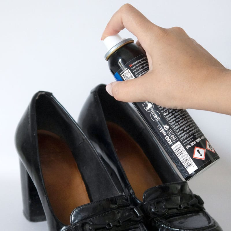 - Spray op het gebied aan de binnenzijde van de schoen, daar waar deze knelt.