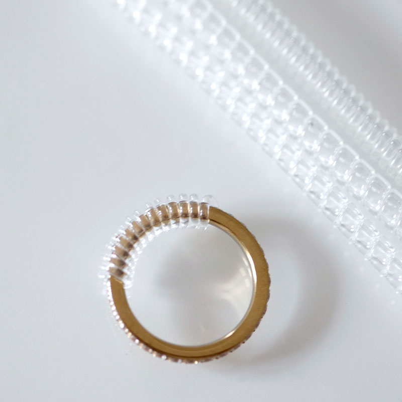 Met dit product kan je de maat van je ring verkleinen, of je nu een ronde of een hoekige ring hebt. Van de spiraalvormige variant zijn er 4 verschillende modellen, en deze is daarom geschikt voor verschillende soorten ronde ringen. Elke maat (elke verkleiner) is ca. 9,5 cm. Dit type maatverkleiner draai je rechtstreeks op de ring vast, en je kan de lengte zelf op maat knippen. Bekijk de bijbehorende video voor uitleg.