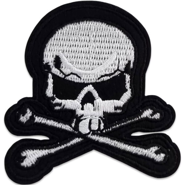 Ben je op zoek naar een stoere applicatie, dan ben je hier aan het juiste adres. Dit is een geborduurde applicatie van een doodshoofd met botten, voorzien van een Iron-On achterzijde. Je kan de applicatie dus opstrijken over een gat dat je wil repareren. Bovendien is zo’n applicatie ook uitstekend geschikt om oude kleding een nieuw leven te geven.