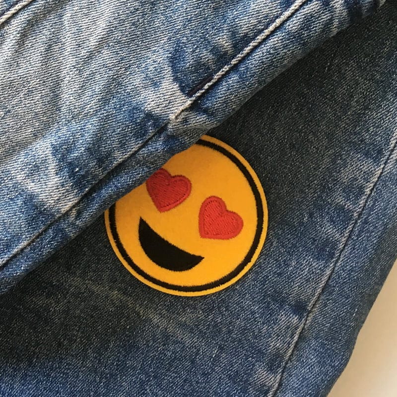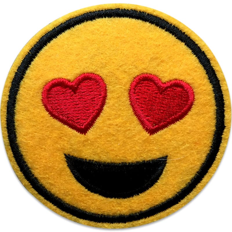 Ben je op zoek naar een leuke applicatie, dan ben je hier aan het juiste adres. Dit is een geborduurde applicatie van een smiley met hartogen, voorzien van een Iron-On achterzijde. Je kan de applicatie dus opstrijken over een gat dat je wil repareren. Bovendien is zo’n applicatie ook uitstekend geschikt om oude kleding een nieuw leven te geven.