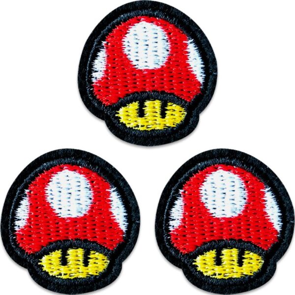 Een 3-pack met schattige Toad-hoofdjes van Super Mario. Deze paddenstoelen zijn 3 cm groot, met een achterzijde van Iron-On materiaal. Door de maat en het thema zijn deze goed te gebruiken als decoratie of om kleding te repareren of te markeren. Bij je aankoop ontvang je onze populaire opstrijkhandleiding.