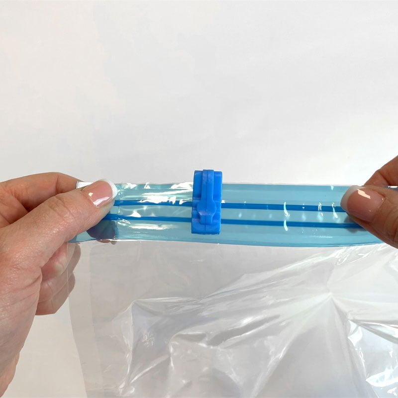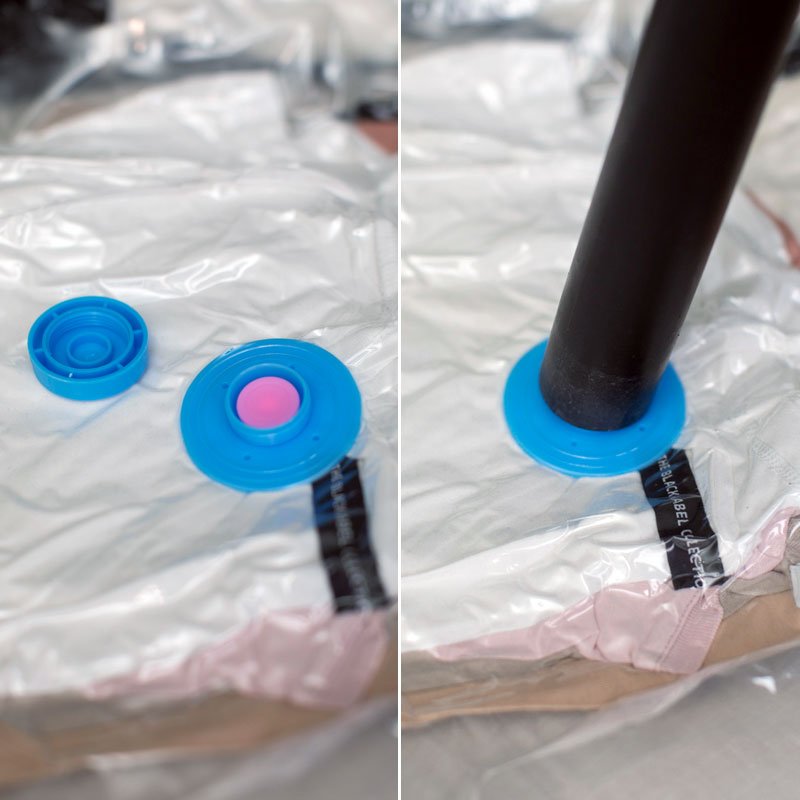 Onze tip: Laat wat ruimte vrij precies onder het ventiel, dan is het gemakkelijker om de lucht eruit te zuigen met de stofzuiger.